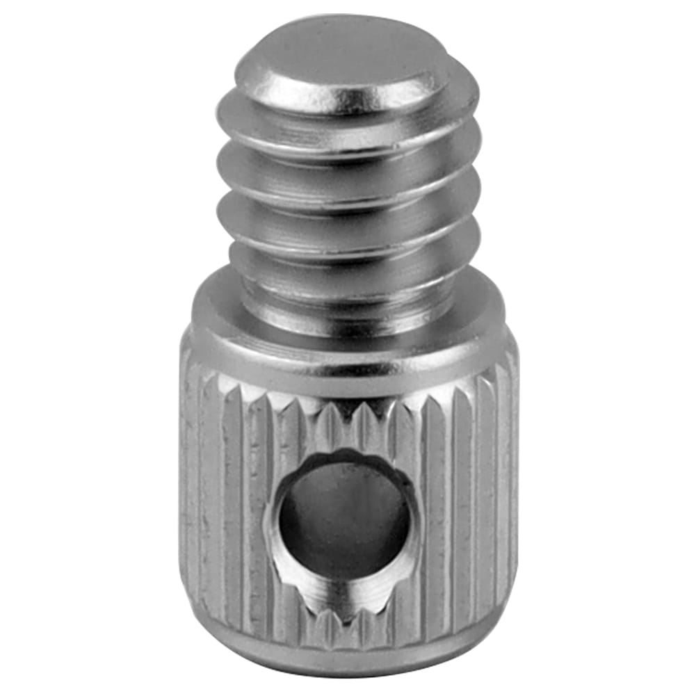 Śruba 1/4" z oczkiem wykonana z aluminium w kolorze srebrnym. Kompaktowa, lekka i wygodna w montażu. Umożliwia przypięcie paska lub smyczy zabezpieczającej sprzęt foto-wideo.