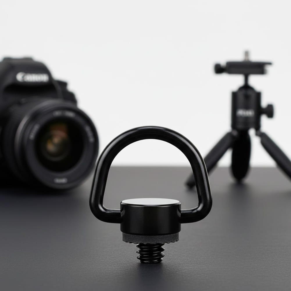 Wytrzymała śruba statywowa 1/4" z uchem D-ring do aparatów i kamer. Stal węglowa niklowana, gumowa uszczelka antypoślizgowa i szybki montaż bez narzędzi. Idealna do płytek, rigów i akcesoriów foto-wideo.